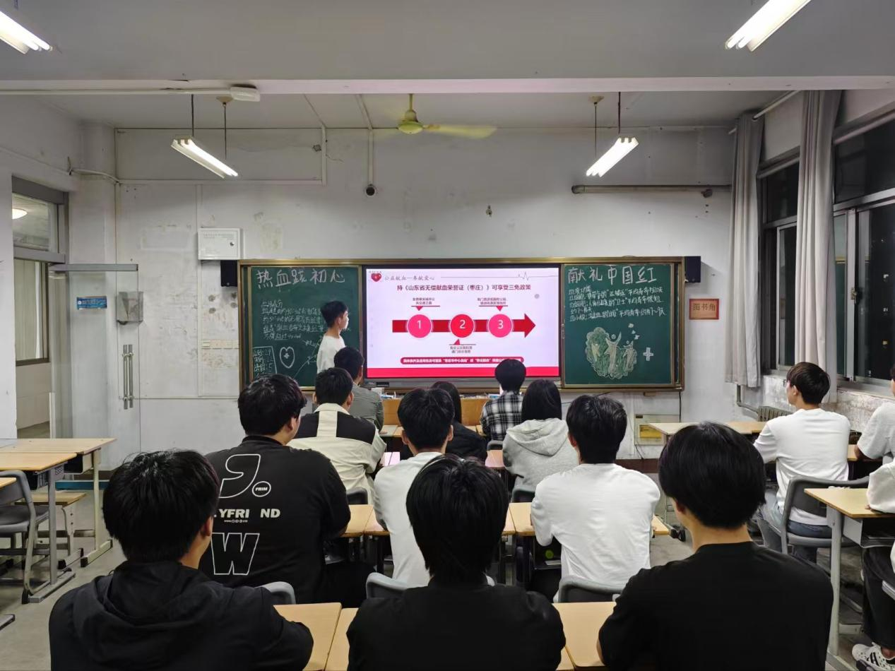 此次团课围绕无偿献血展开全方位科普,以PPT、视频展示结合专题讲解+流程拆解的方式,分四大板块系统授课。各班团支书首先借助PPT、视频直观解读《献血法》,明确健康公民的献血权利与义务,以及全血、成分血的采集间隔与血量标准;随后通过视听素材辅助,介绍血液成分与功能,针对“献血是否影响健康”“是否会传染疾病”等常见疑问进行科学解答,同时清晰列出献血基本条件与注意事项。同学们通过多元呈现的团课内容,全面掌握了无偿献血的法律要求、医学知识、奖励政策,清晰知晓了线下献血活动的流程与注意事项,彻底破除认知盲区,形成了科学全面的认知。