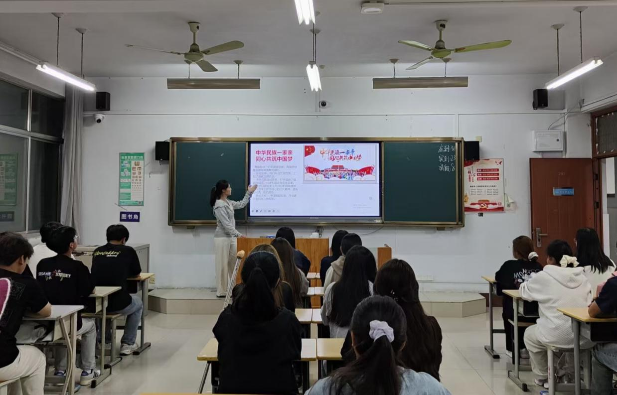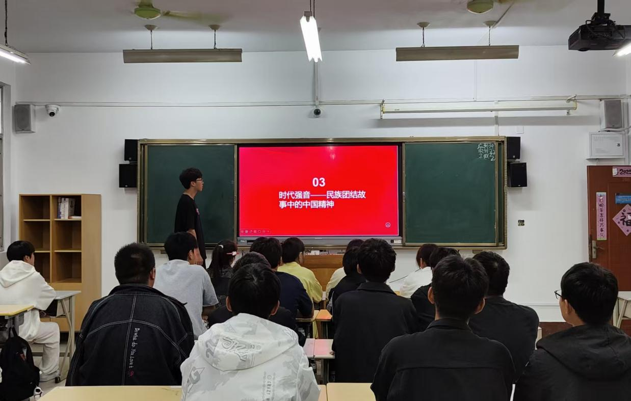 班会期间,各班班长围绕“讲好中华民族团结故事,弘扬中国时代精神”这一主题展开,通过视频案例,政策解读与互动研讨等形式,系统讲解了民族团结的时代意义,打破了学生对民族文化的“陌生感”,让“尊重差异、包容多样”的理念成为学生的自觉认知,有效提升了其民族认同感与社会责任感。