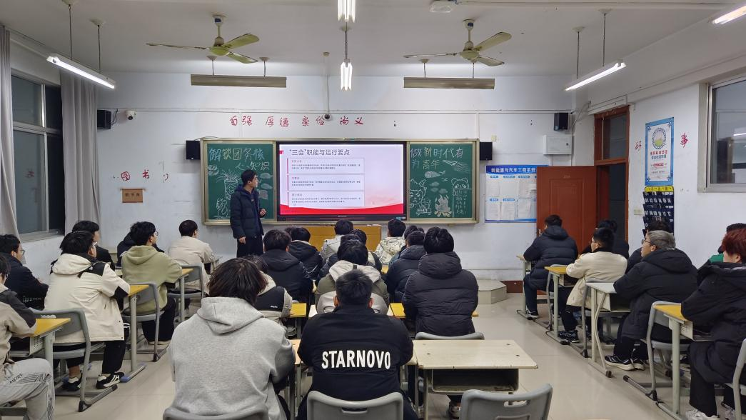 为深入推进共产主义青年团团员组织建设,增强青年思想政治素养与理论水平,引导广大团员坚定理想信念、勇担时代重任,12月18日,新能源与汽车工程系在教学楼C座各教室组织开展“解锁团务核心知识,做新时代有为青年”主题团课。