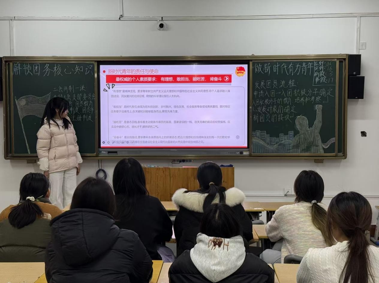 12月18日,经济与信息技术系组织各班级于教学楼A座、B座开展“解锁团务核心知识,做新时代有为青年”主题团课。此次团课旨在引导学生深刻理解新时代青年的责任与使命,激发青年立足岗位践行担当的自觉性与行动力。