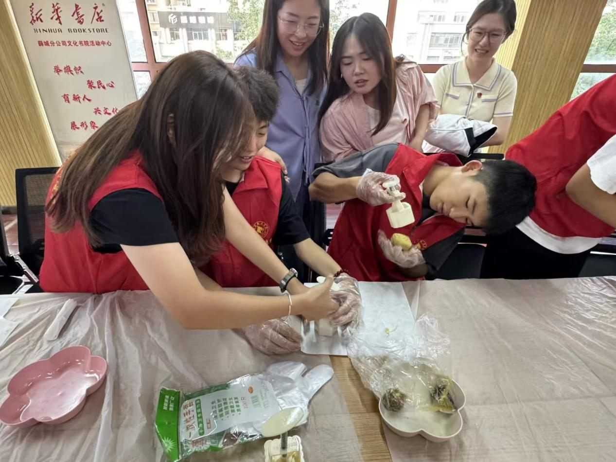 本次活动创新采用“理论讲解+实操教学+互动分享”模式,将校社温情与传统节日文化深度融合。同学们在学习制饼技巧的同时,认真聆听社区长辈讲述“凭票换月饼”“全家围坐做月饼”的往昔记忆,让“团圆”从抽象概念转化为祖孙间的温情对话、邻里间的互助协作。
