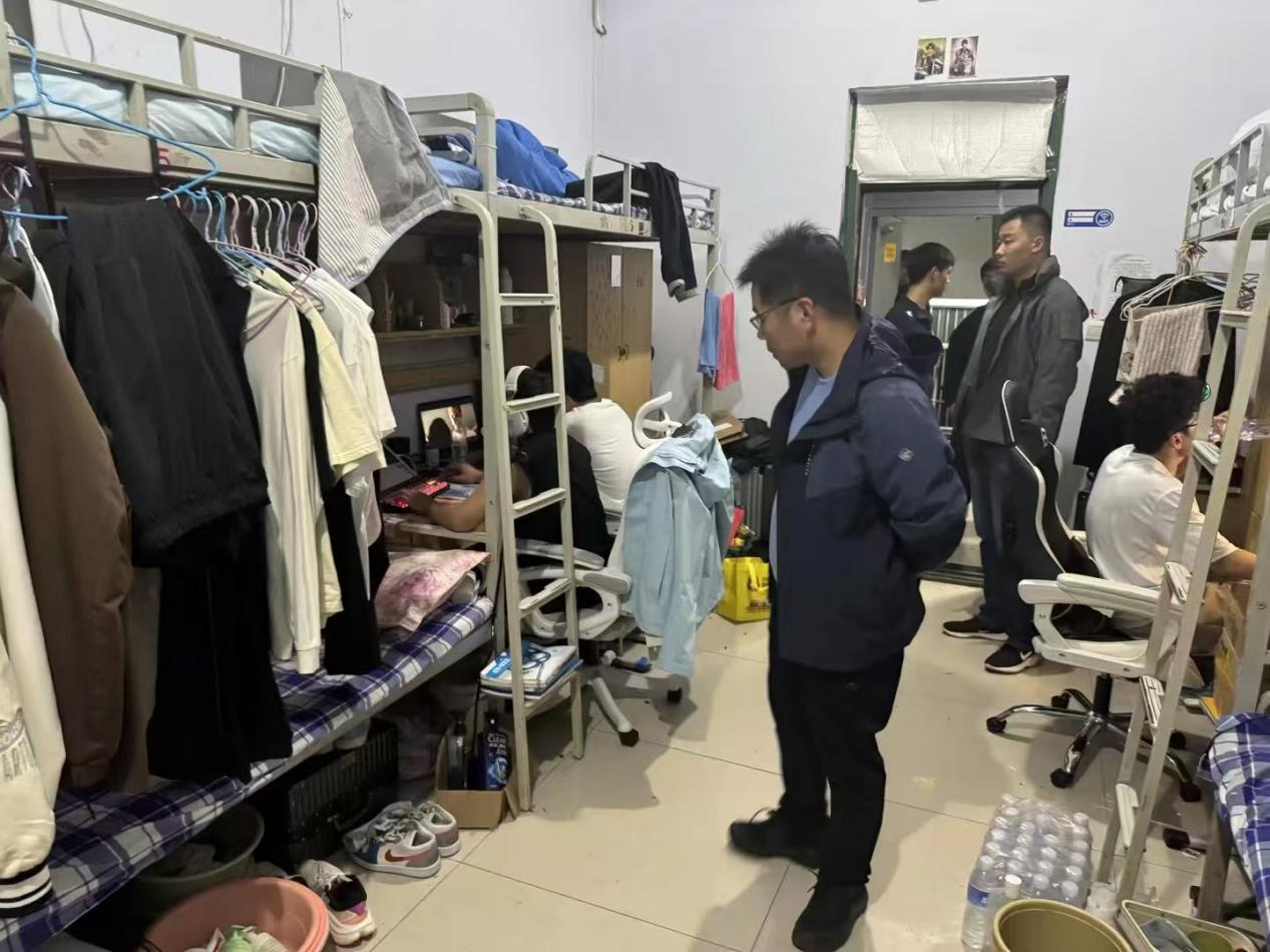 本次检查聚焦宿舍安全与卫生核心维度,以用电安全、环境整洁度、违规行为排查为重点。检查过程中,工作人员逐间深入宿舍,细致排查用电安全隐患,全面检查地面清洁、床铺整理、桌面收纳等卫生状况,同时核查是否存在饲养宠物、乱贴乱画等不文明行为。检查全程秉持 “检查促规范、教育固意识” 原则,对发现的安全隐患与卫生问题,现场与学生沟通整改要求、明确整改标准;对卫生整洁、规范有序的宿舍当场予以表扬,树立优秀典型,引导其他宿舍对标学习。