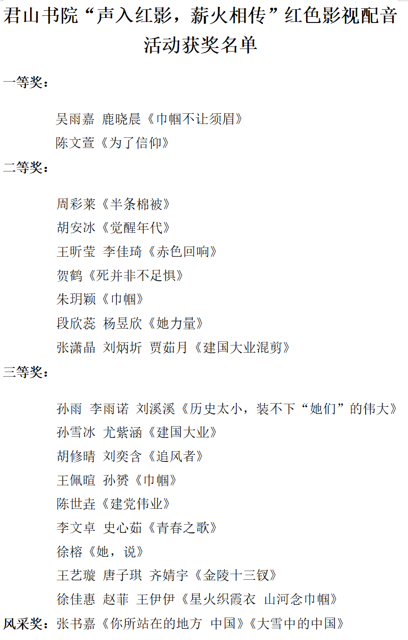 此次红色影视配音活动,打破了传统红色教育的固有模式,将听觉体验与历史学习相结合,不仅为学生们提供了展现语言表达与情感演绎能力的平台,更让革命精神、爱国情怀在潜移默化中得到传承与弘扬,为校园文化注入了浓厚的红色基因。未来,君山书院将继续探索红色教育新形式,开展更多富有感染力的文化活动,让红色薪火在青年一代中代代相传。