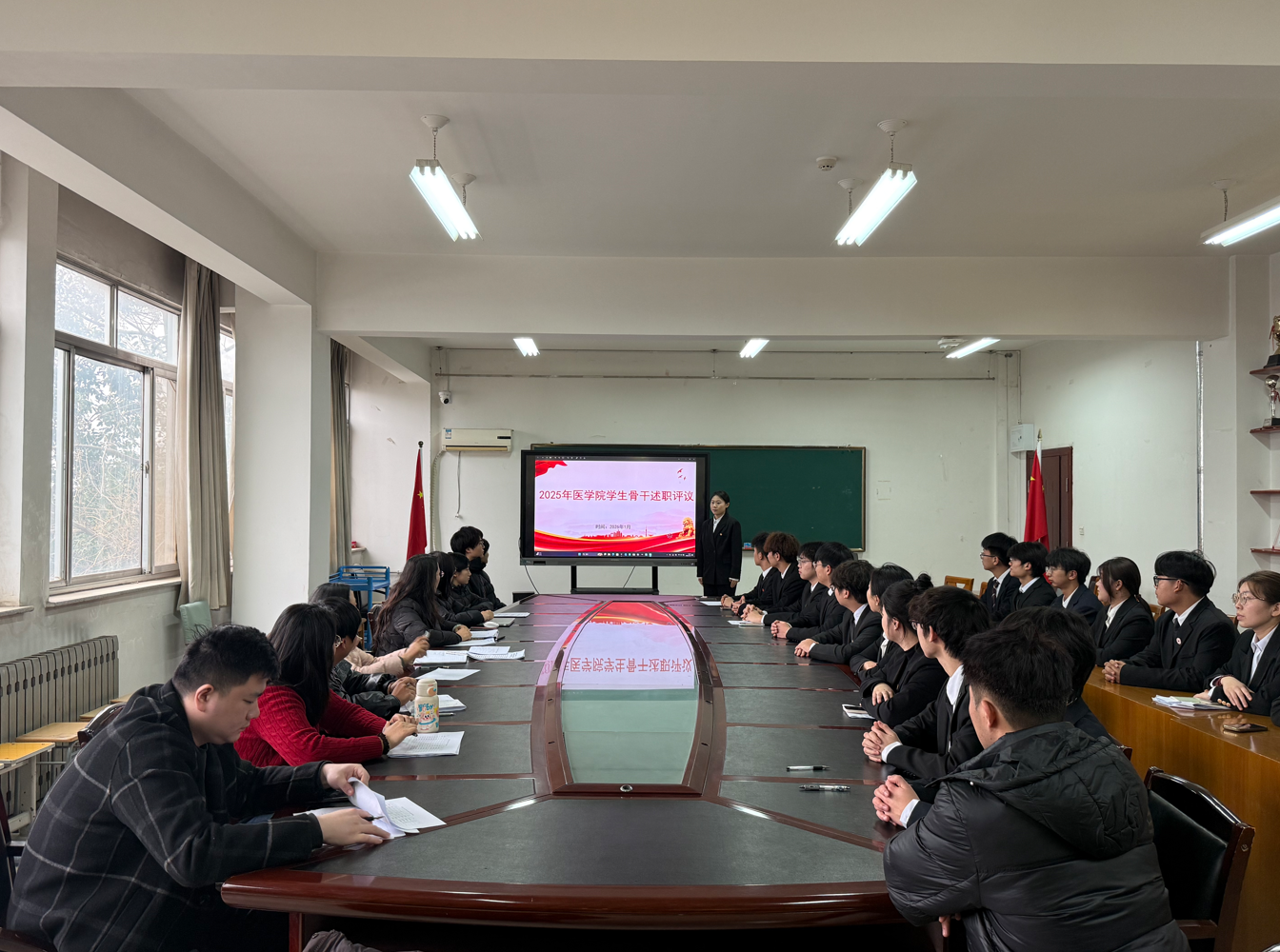 为全面复盘2025年度学生工作成效,检验学生干部履职实绩,搭建交流提升平台,进一步锻造高素质学生干部队伍,推动学生工作高质量发展,医学院于1月14日召开2025年度学生干部述职评议会。学生工作分管领导、老师及全体学生干部参会。