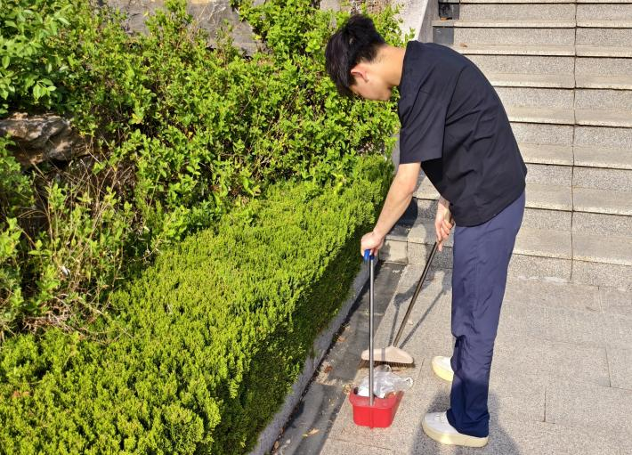 参与服务活动的同学们热情高涨,大家手持扫帚、簸箕等清洁工具,分工明确,有条不紊地投入到清洁工作中。