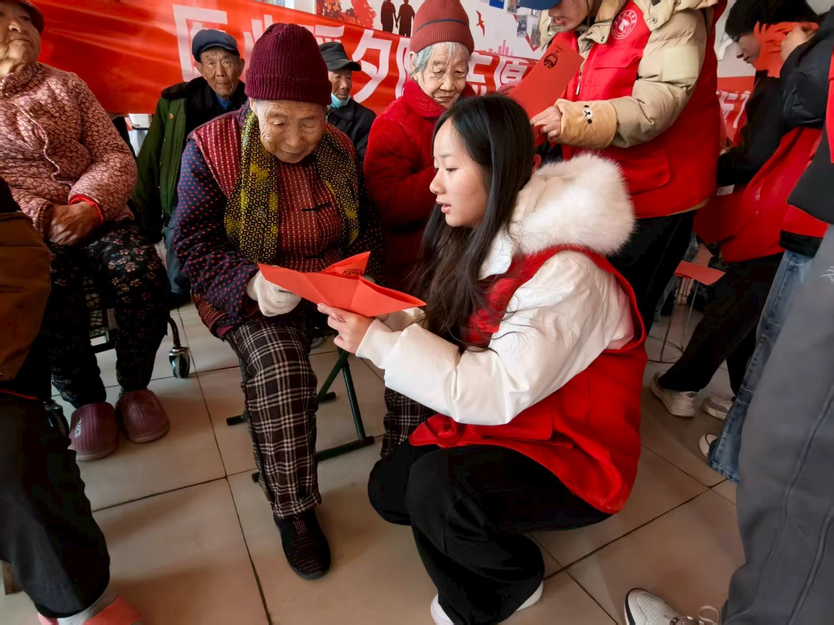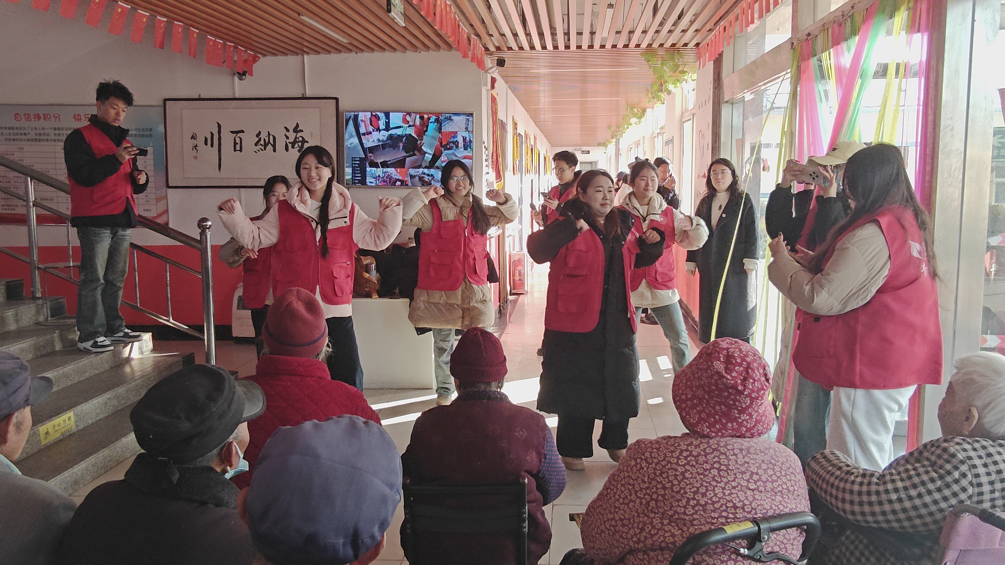 到达敬老院后,在带队老师和敬老院工作人员的协调下,活动有序展开。志愿者们首先带来精心准备的文艺表演,演唱多首老人们喜爱的经典歌曲,熟悉的旋律唤起了大家美好的往昔回忆。随后,志愿者们献上了节奏明快、充满朝气的舞蹈表演:既有轻盈活泼的现代舞步,也融入了老人们熟悉的传统韵律。他们动作整齐、笑容洋溢,用青春的活力感染着在场的每一位老人。不少老人随着节拍轻轻点头、鼓掌,甚至有位奶奶情不自禁地在座位上跟着哼唱摇摆,现场洋溢着温馨而欢快的气氛。紧接着是深受欢迎的剪纸环节,志愿者们提前准备好剪刀、彩纸以及各式吉祥窗花、福字模板,耐心细致地讲解并示范剪纸技巧。他们手把手协助视力较弱或手部不便的老人完成作品,老人们专注投入,在指尖翻飞间传递着创作的乐趣与成就,完成作品后还互相展示、分享喜悦。随后,志愿者们走进老人房间,结合医学专业知识,用通俗易懂的语言讲解高血压的日常预防与注意事项,并与老人们亲切交谈。活动最后,志愿服务队协助工作人员完成场地整理。老人们纷纷表示在活动中感受到了温暖与陪伴,脸上始终洋溢着笑容,活动在温馨愉快的氛围中圆满结束。