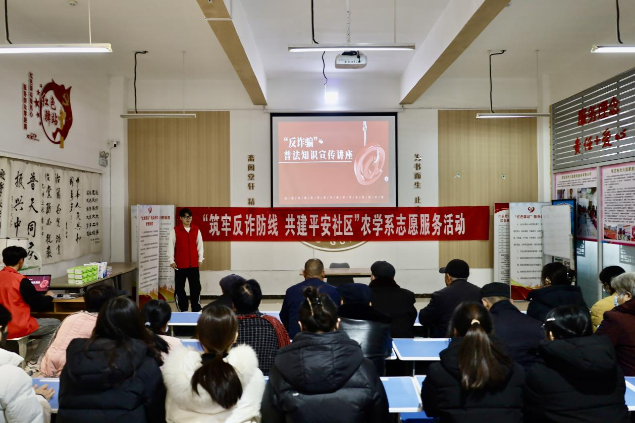 为筑牢社区反诈安全防线,切实守护好居民“钱袋子”。12月25日农学系的志愿者组成反诈宣传队,深入社区开展“筑牢防诈防线,守护财产安全”主题志愿活动,以多维度举措提升居民反诈意识,旨在让居民掌握了实用的反诈技能,有效遏制电信网络诈骗案件的发生。